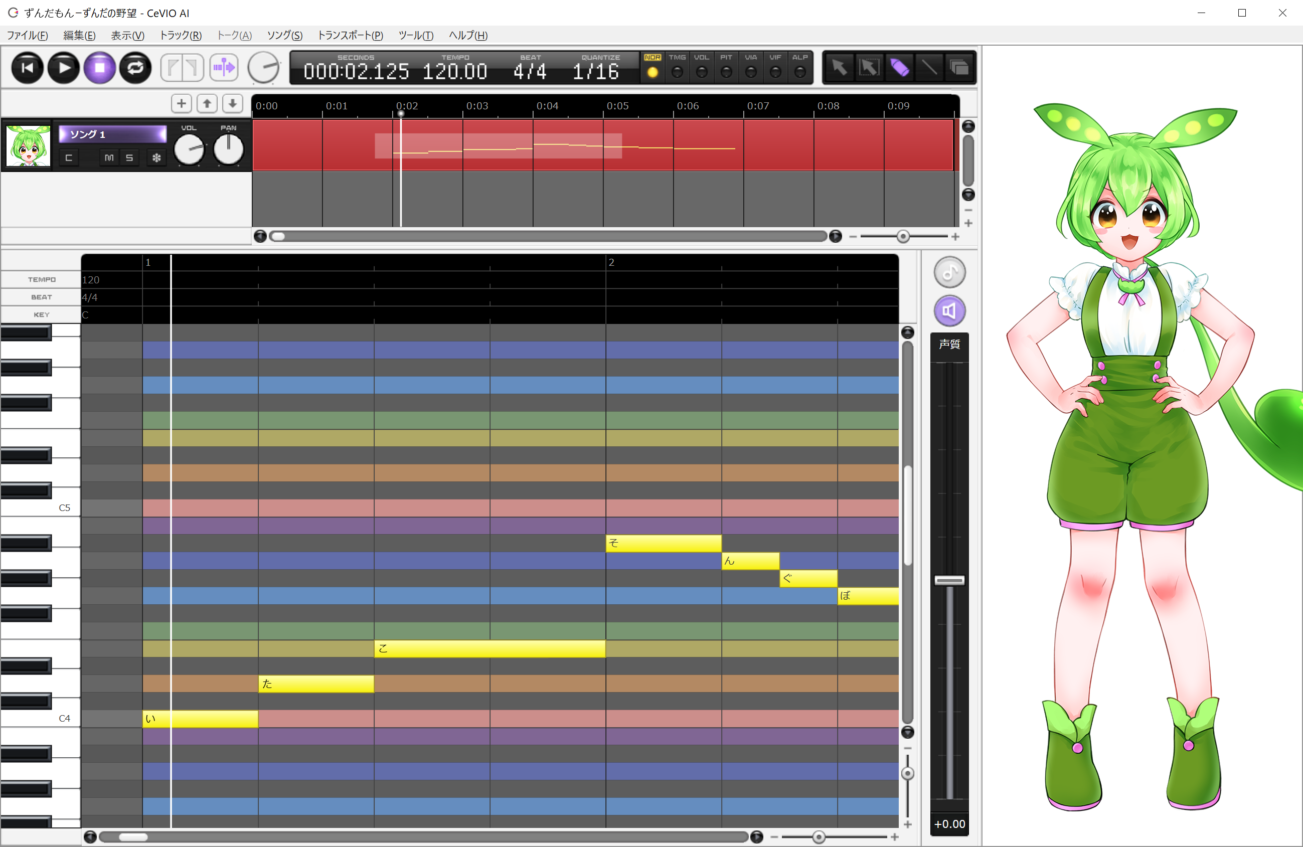 ずんだもんメロディーと歌詞を入力して、キャラクターに歌を歌わせることができます